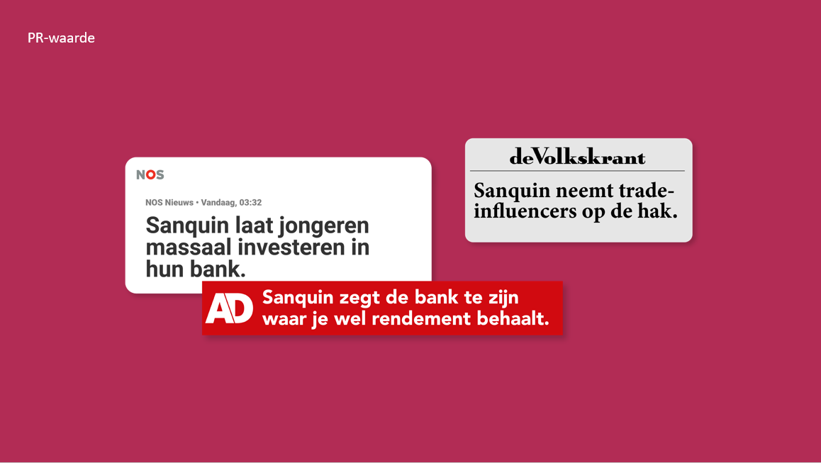 Sanquin wordt de bank waar je wél rendement kunt behalen en waar jouw investering meer waard wordt. Hiermee framen we de waarde van een bloeddonatie als investering in mensenlevens. Dit idee wordt uitgerold in een social campagne waar we trade influencers op de hak nemen.